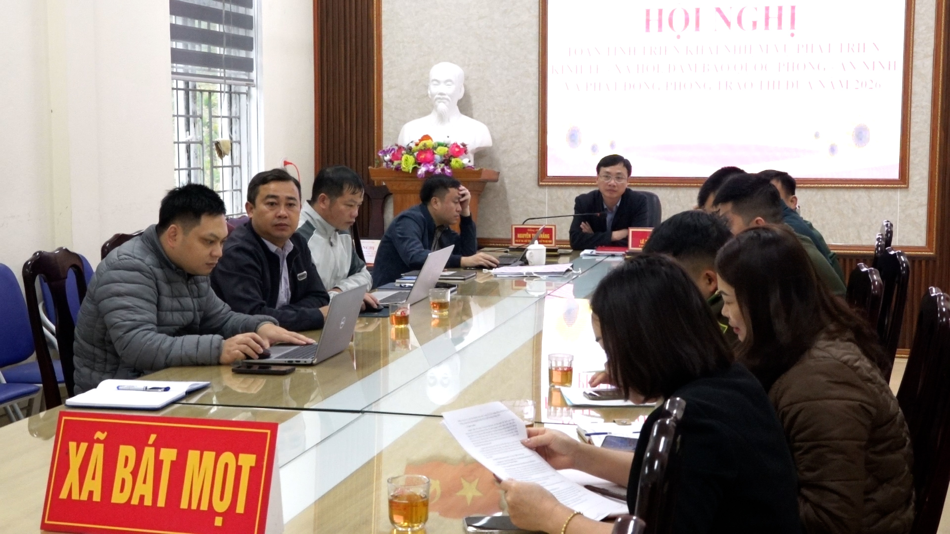 Chiều ngày mùng 07 tháng 01 năm 2026, tại Hội trường Ủy ban nhân dân xã Bát Mọt, Đảng ủy xã đã tổ chức Hội nghị quán triệt, triển khai Chương trình hành động thực hiện Nghị quyết Đại hội đại biểu Đảng bộ tỉnh Thanh Hóa lần thứ XX và các chương trình trọng tâm, khâu đột phá thực hiện Nghị quyết Đại hội Đảng bộ xã Bát Mọt khóa I, nhiệm kỳ 2025 – 2030; Chương trình công tác năm 2026.